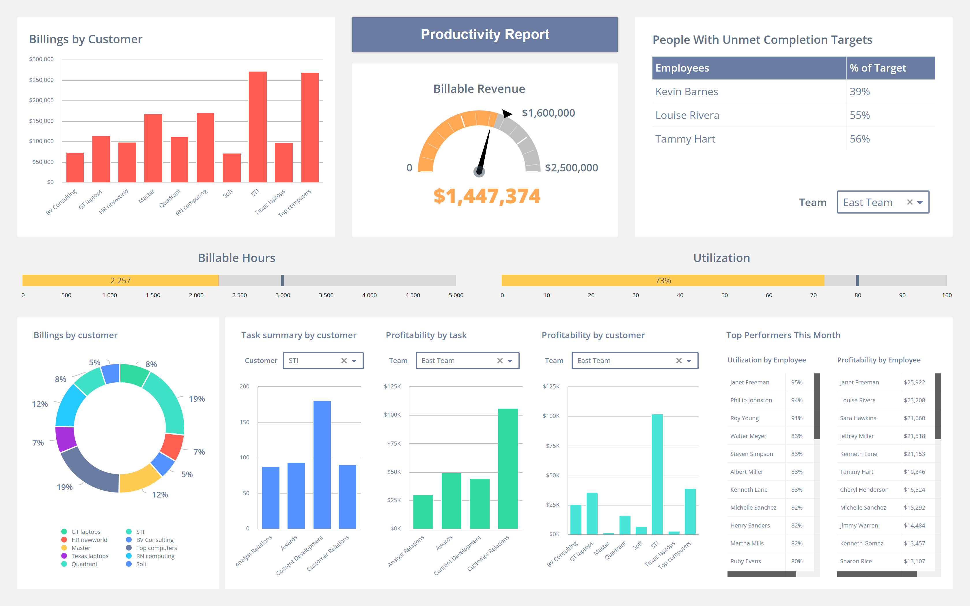Time tracking software is one of the most popular reporting tools. It’s used primarily to track billable time and measure project profitability.