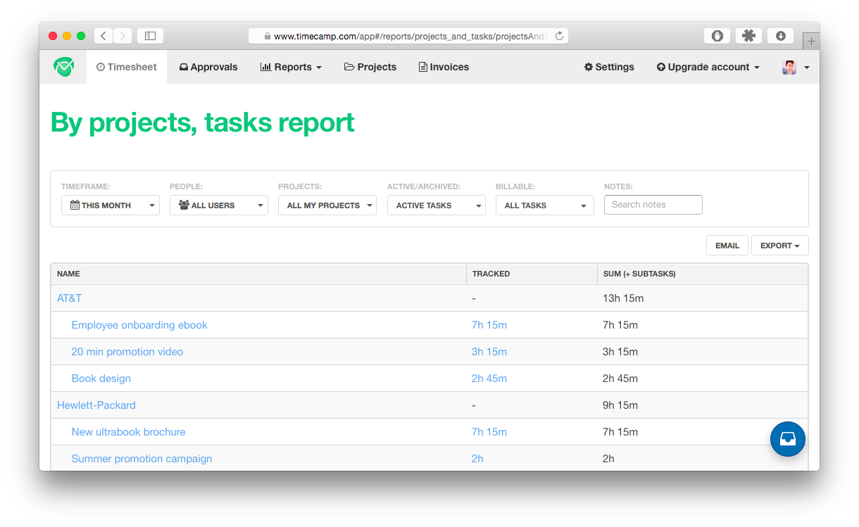 A aplicação mede o tempo que sua equipe gasta ao realizar determinadas tarefas. Confira o progresso do trabalho. Integre a ferramenta com outros aplicativos que você usa.