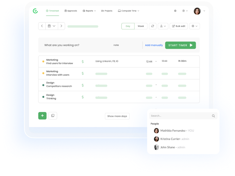 Get access to all Time Camp features like timesheets, invoicing, budgeting, attendance etc.